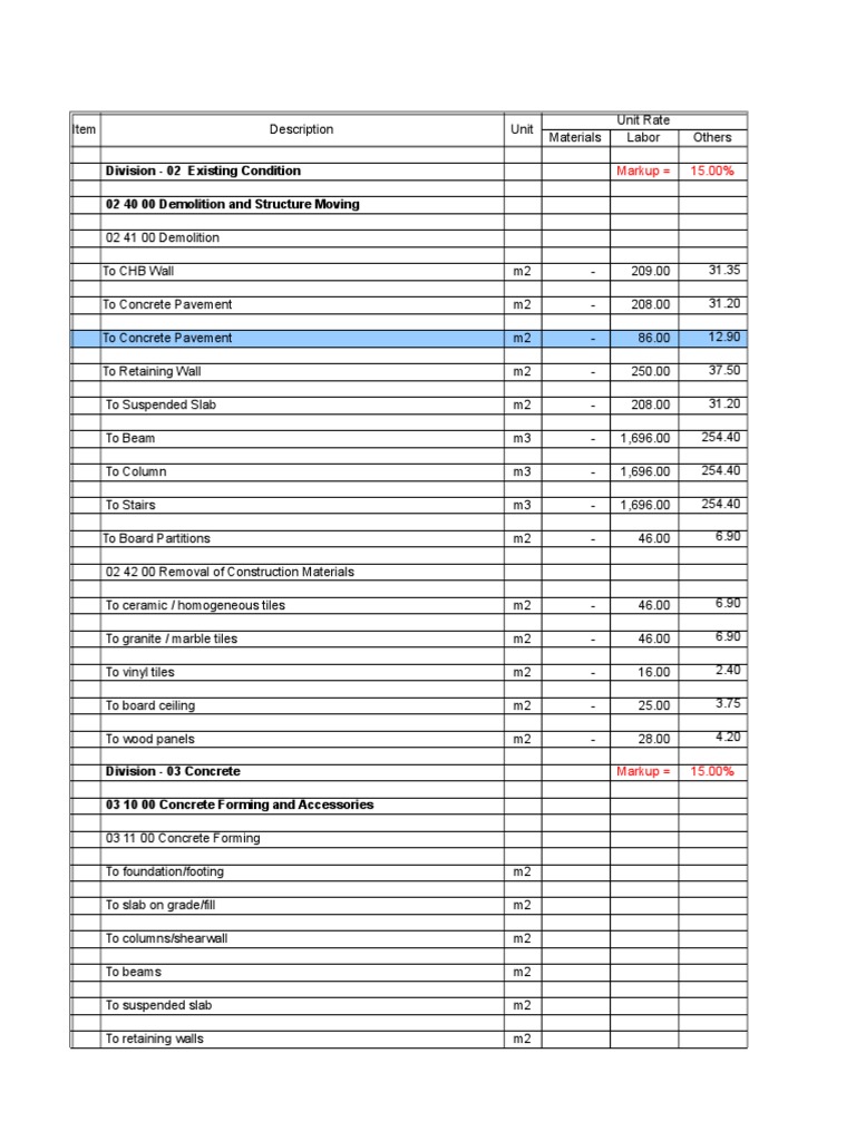 Unit Rates And Cost Per Item Deep Foundation Paint